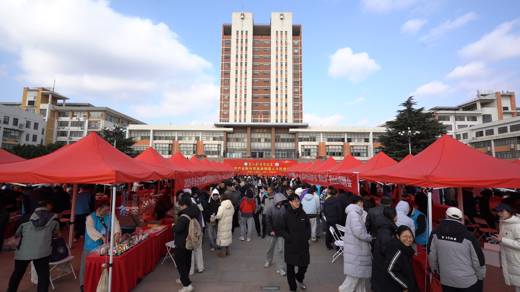虹子廣場上,沾化冬棗的鮮甜與求職簡歷的墨香交織,青農(nóng)大學(xué)子在萊陽梨的攤位前駐足品嘗,將求職簡歷遞向了心儀的農(nóng)業(yè)科技企業(yè)。12月2日,第三屆“青農(nóng)大集”在青島農(nóng)業(yè)大學(xué)城陽校區(qū)如期開市。與往年不同的是,本屆大集呈現(xiàn)了“頭雁”學(xué)員與高素質(zhì)農(nóng)民培育學(xué)員融合培育的成果。這場持續(xù)五小時(shí)的活動(dòng),不僅是一場農(nóng)產(chǎn)品展銷會(huì),更是一個(gè)濃縮的鄉(xiāng)村人才生態(tài)閉環(huán)——生產(chǎn)者、產(chǎn)品、市場與未來從業(yè)者在此實(shí)現(xiàn)校園場景下的全景式對接。