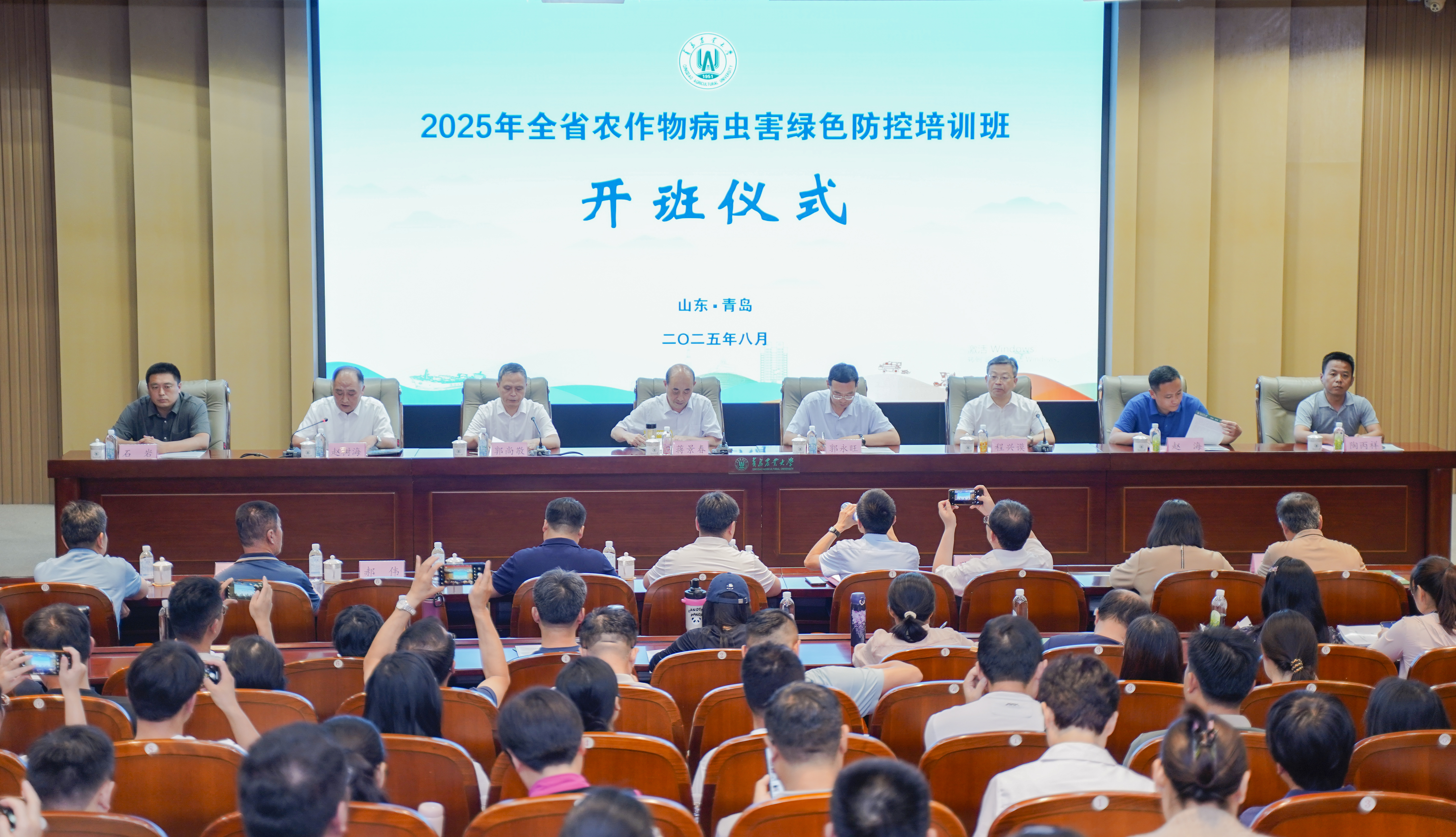 為深入貫徹習(xí)近平生態(tài)文明思想,將縣鄉(xiāng)農(nóng)技推廣人員培養(yǎng)成綠色防控技術(shù)在基層落地的關(guān)鍵推動(dòng)者和實(shí)踐者,有效彌合技術(shù)與應(yīng)用之間的最后一公里,保障我省農(nóng)業(yè)生產(chǎn)安全、農(nóng)產(chǎn)品質(zhì)量安全和農(nóng)業(yè)生態(tài)安全,8月25日,“2025年全省農(nóng)作物病蟲害綠色防控培訓(xùn)班”在青島農(nóng)業(yè)大學(xué)正式開(kāi)班。山東省農(nóng)業(yè)農(nóng)村廳二級(jí)巡視員蔣景春,青島農(nóng)業(yè)大學(xué)黨委委員、副校長(zhǎng)郭尚敬,全國(guó)農(nóng)業(yè)技術(shù)推廣服務(wù)中心防治處處長(zhǎng)郭永旺、青島市農(nóng)業(yè)農(nóng)村局二級(jí)巡視員、市農(nóng)技中心黨委書記程興謨,山東省農(nóng)業(yè)農(nóng)村廳種植業(yè)管理處副處長(zhǎng)趙海,山東省農(nóng)業(yè)農(nóng)村廳綠色發(fā)展處四級(jí)調(diào)研員石巖,山東省農(nóng)業(yè)農(nóng)村廳質(zhì)監(jiān)處四級(jí)調(diào)研員陶丙祥出席開(kāi)班儀式。儀式由山東省農(nóng)技中心黨委成員、副主任趙樹(shù)海主持。全省15地市植保工作負(fù)責(zé)同志、縣(市、區(qū))農(nóng)技推廣機(jī)構(gòu)植保綠色防控技術(shù)骨干117人參加本期培訓(xùn)。